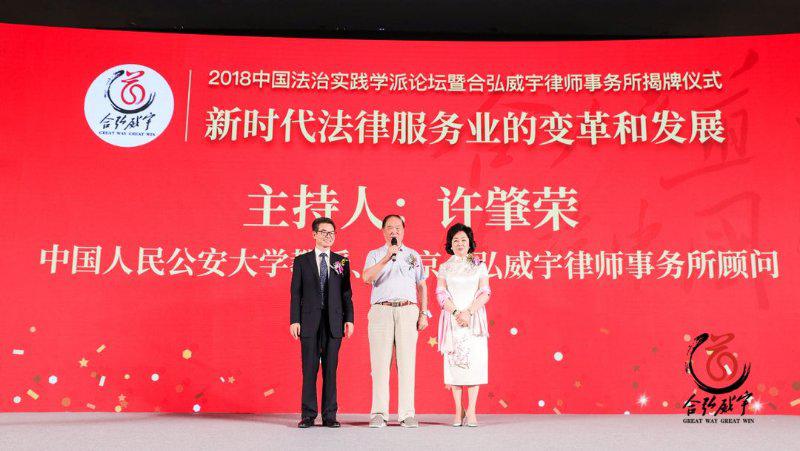 2018年8月18日,由合弘威宇律师事务所主办的2018中国法治实践学派论坛暨北京合弘威宇律师事务所揭牌仪式在北京举行。论坛的主题是:新时代法律服务业的变革和发展。