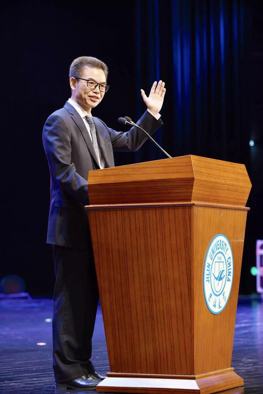 报到。我坐火车从杭州到天津中转再到长春,咣当咣当,两天两夜。怎能忘记长春火车站大清早穿着军大衣师兄师姐欢迎我的场面!怎能忘记七舍112我的寝室!怎能忘记文科楼501第一次班会第一堂课!怎能忘记七舍食堂——那里有油条豆浆馒头高粱米饭,那里有土豆白菜猪肉粉条,(笑声掌声)唉呀,那里还有溜肉段!My Favorite!(笑声掌声)那个年代,我们省吃俭用,我们发奋读书,我们天天盼来信,我们不敢谈恋爱。(笑声)那个年代,我们热血沸腾,我们豪情满怀,我们激情四射。那个年代,我们登上讲台,我们振臂一呼:“天下兴亡,匹夫有责!”(掌声)我们拍着胸脯高喊:“我自豪,我骄傲,因为我们是八十年代的青年!”(掌声)
