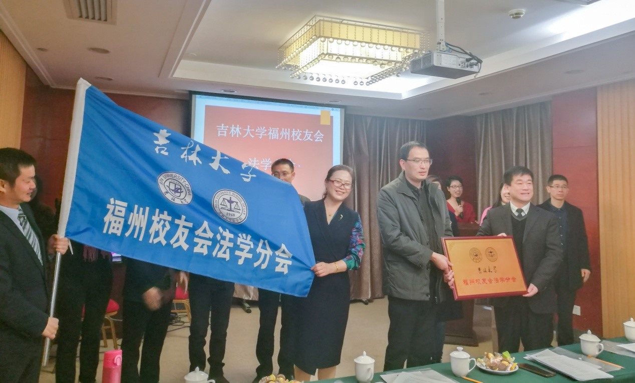 向福州校友会常务副会长吴海鹏授旗。