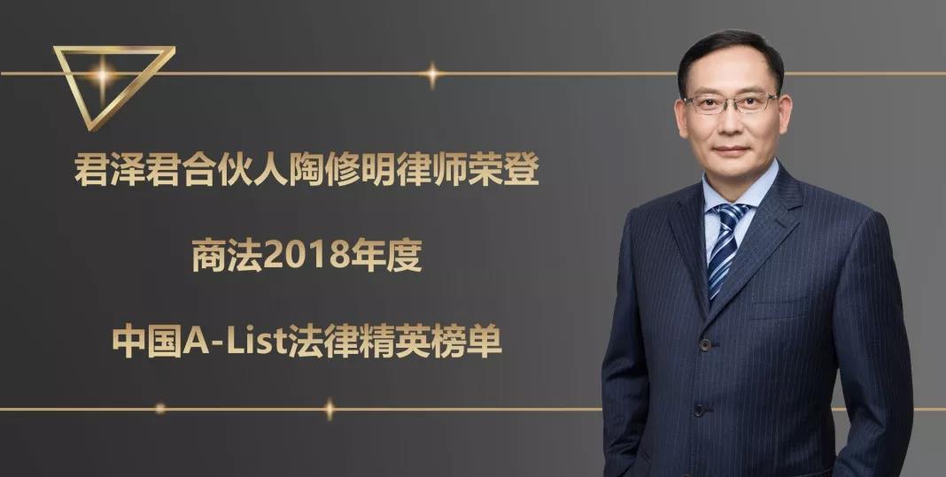 12月14日,亚洲权威法律媒体《商法》(China Business Law Journal)最新发布了2018年度中国市场“A-List法律精英”榜单,君泽君合伙人陶修明律师凭借卓越的专业实力和优秀的市场口碑多年蝉联登榜。