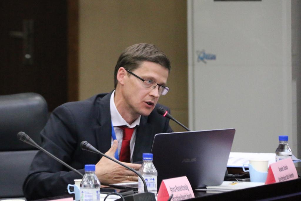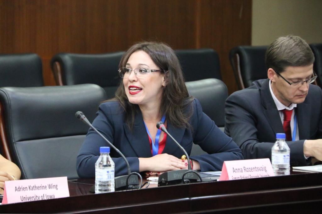 副院长安娜·桑德斯维治教授向各位专家做了《俄罗斯与中国立法比较分析》主题发言。介绍学院在重视法律诊所与模拟法庭课程,开设了夏季学校与政府、法院和企业合作的情况。并阐述中俄法律教育在学位设置方面的差异。