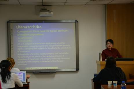 的温双阁教授为大家进行了以“中国公司法的沿革与特点”为主题的讲座,徐晓副教授参与旁听。会上,温双阁教授耐心的为学员们讲解中国公司法的发展历程与现状、特点,学员们与温双阁教授、徐晓副教授互动顺畅,课堂气氛非常活跃。