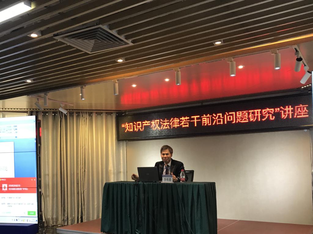 其后,李教授就著作权法、专利法、商标法三个方面的前沿问题进行了深入浅出的讲解和分析。著作权法方面,他提出著作权法保护表达不保护创意,并举例女子十二乐坊案、重庆大轰炸油画案进行分析;专利法方面,李教授就专利法的定义、作用结合经典案例以及专利制度的合同理论等进行了分析讲解;商标法方面,李教授就商标的概念构成、商标与商誉的关系以及驰名商标等问题进行了深刻的分析。