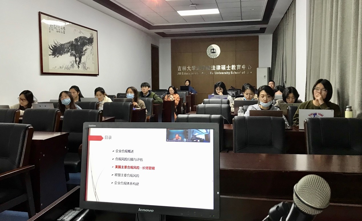 接着郑总分五个模块进行了条理清晰的讲解。她首先阐释了合规和合规管理的概念、合规管理的历史发展、企业加强合规管理的动因、合规管理对中资企业海外拓展的现实意义、大型企业合规管理的发展趋势和企业合规管理的理念框架。此后,郑总向同学们展示了合规风险扫描与评估的业务流程。通过她对合规管理的框架模型、风险评估要点扫描和风险地图描绘几个环节的讲解,同学们了解了企业合规管理业务的全貌。