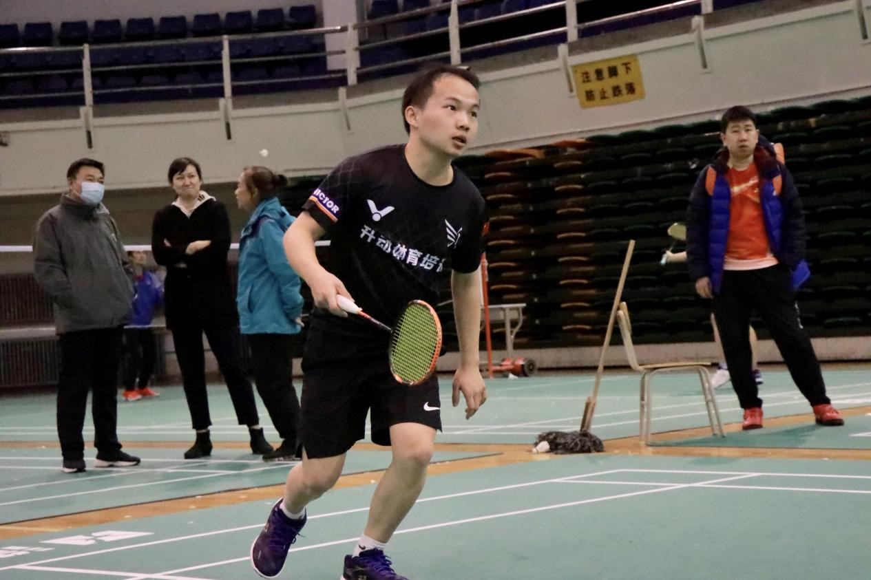 在全校羽毛球赛场上的最好成绩。