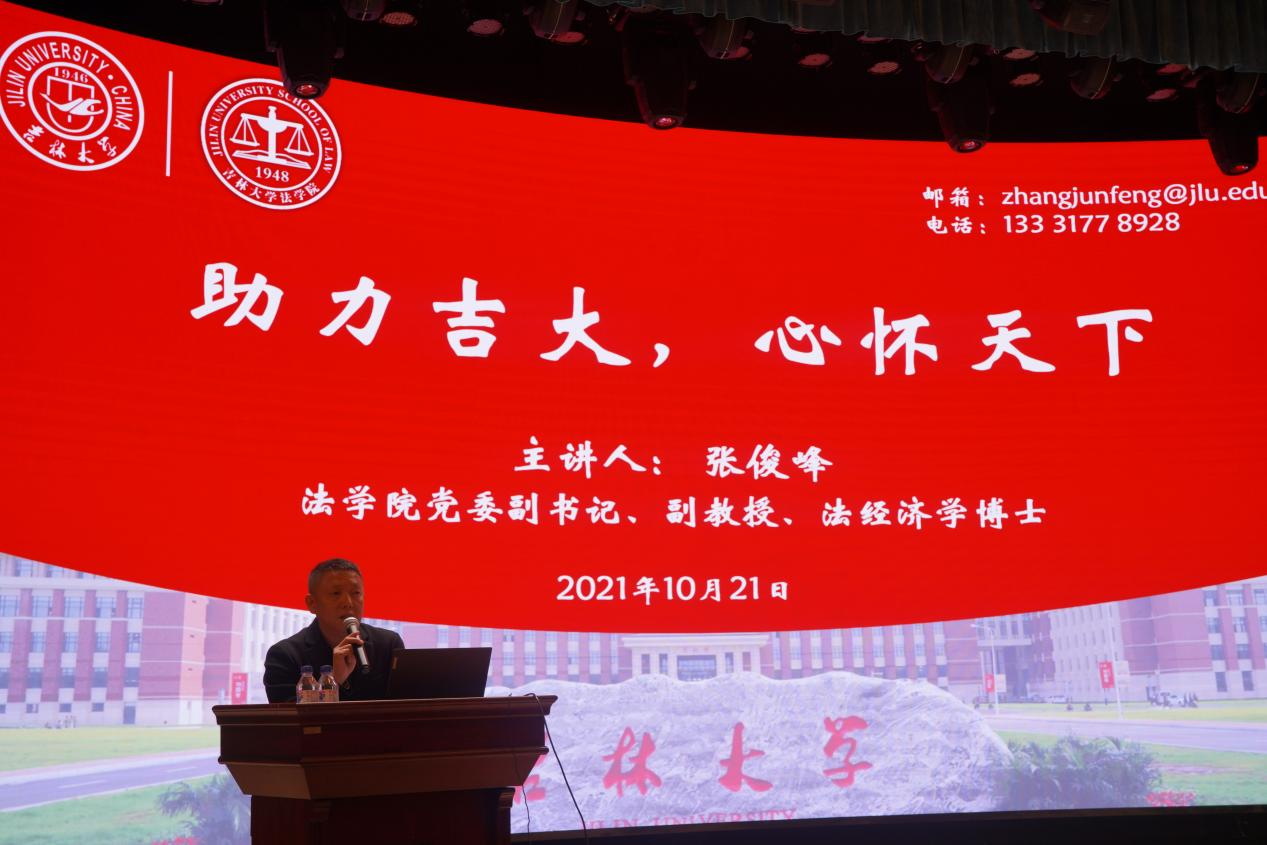 雄厚的师资力量和丰富的学科资源,不断充实和完善自己,更好地实现自己的人生价值和吉大法律人的历史使命。他指出,当前中国所处的是一个全新的历史时期,面临着“百年未有之大变局”,世界形势、中国现实与我们每个人都息息相关,每位新生都应关注并拥护党和国家的基本方针、政策,将个人发展与国家事业紧密地结合在一起。张俊峰副书记还就国家的民族和宗教政策进行了详细而深入的讲解。