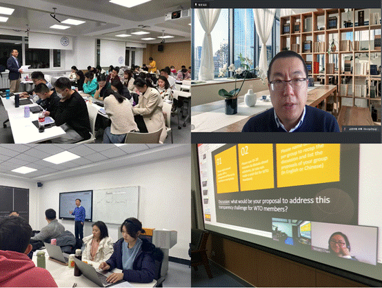 在教学实践环节,本项目深入贯彻“以学生为中心”的理念和模式。各门课程的教学计划的实施均围绕学生发展、学生学习和学习效果三个中心,从增进学生的职业认知并培养其职业兴趣、引导学生形成长远的愿景与使命并将自己的兴趣融入问题解决的过程的角度,培养学生在法律检索、阅读、分析、推理、写作等方面的实践能力。根据涉外律师项目培养方案,本学期完成了法律英语、国际关系理论、国际公法原理与实务、国际私法原理与实务等专业必修课程和国际融资法律与实务、英国合同法、涉外法律文书写作等强化板块课程。