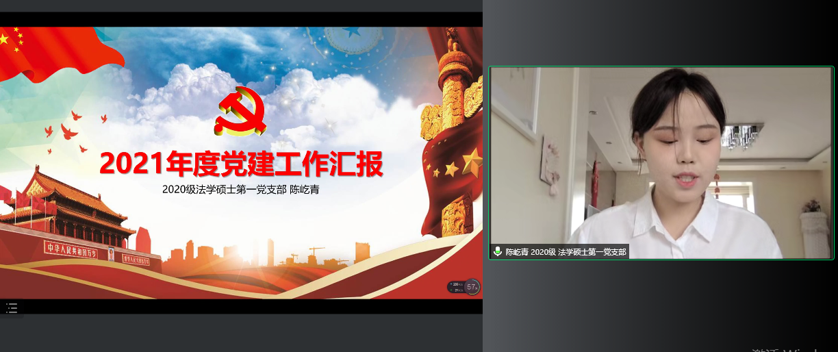 党委书记周春国在总结点评中对各教工和学生党支部在2021年度党建工作中取得的成绩给予充分肯定,并对进一步做好基层党支部工作提出四点意见:首先,党支部工作的根本是实事求是,不能搞形式主义。要通过党支部“三会一课”的载体将之与教学科研、人才培养、学生成长等情况结合起来,与新时代e支部的建设结合起来,只有让每一位老师和同学在参加支部活动中有所收获才能增强党支部建设的生命力。第二,党支部工作的目标是提升党员的先进性。党支部的工作是为了不断巩固和扩大党执政的群众基础,因此工作中一定要抓住工作重点,比如当下全民抗疫,教师的工作重点应该是做好线上教学工作,关注关心学生生活;学生的工作重点应该是积极参与志愿服务,专注于提升学业成绩,严格遵守学校防疫规定。第三,党支部工作的水平取决于党支部书记的投入和付出。党支部书记是党最基层、最重要的先锋战士,如果党支部书记的政治站位不高,规划能力不足,付出程度不够,那么党员的工作状态无法保证,再好的规划与蓝图都难以落实,每一个党支部书记都应该是一面旗帜,要极其重视自己的岗位职责。第四,党支部工作的创新在于要抓住机遇。在当下抗疫的大背景中,党支部工作要能够与抗疫结合在一起,为抗疫献策,为抗疫助力,抓住抗疫,就抓住了凝聚所有党员的机会。周春国强调,学院每一位老师和每一位同学都是打赢吉大抗疫保卫战的中坚力量,感谢大家在抗疫工作中的付出,叮嘱大家在做好自我防护的同时肩负起党员干部的责任,共同努力为吉大法学今后的抗疫工作贡献力量。