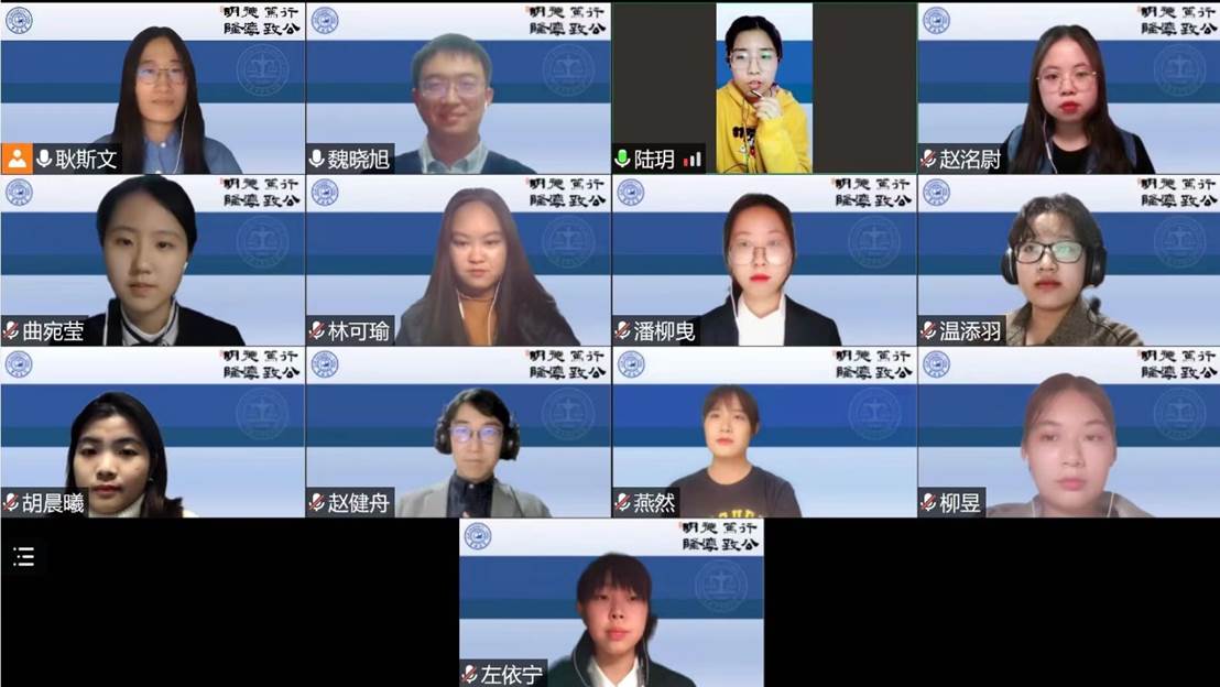 高度重视,迅速开展队伍组建工作,由国际法学博士研究生魏晓旭担任教练,由国际法学硕士研究生耿斯文担任领队,以本科生赵洺尉、潘柳曳、曲宛莹为上场队员,以本科生柳昱、温添羽为研究员,以本科生胡晨曦、燕然、左依宁、林可瑜为队员,并由国际法学博士研究生赵健舟、法理学博士研究生陆玥提供赛事支持。