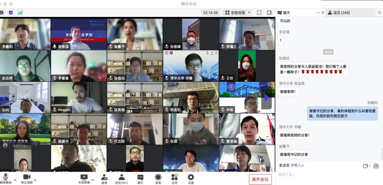 联合清华大学博士生讲师团在腾讯会议举行“云端战疫”思政课,对疫情期间涌现的广大志愿者的先进事迹和精神进行凝练总结。院党委书记周春国、党委副书记张俊峰、研究生辅导员徐晋、于洋,以及91论坛