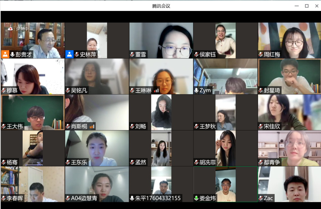 4月11日晚,彭贵才教授通过腾讯会议召开疫情期间学习交流会,与师门在读硕士、博士研究生齐聚线上,分享近期学习情况和生活心理感受,大家其乐融融,共聚一堂。