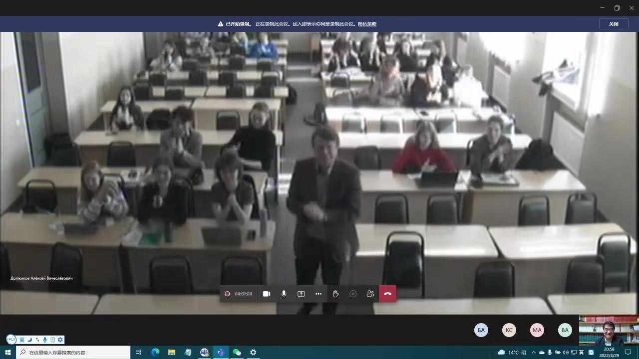 的交流合作;通过学者讲学的方式,让国外师生了解中国法律的理论发展与司法实践,使其对中国有更深入、更全面的了解,助力中俄双方的友好交流。俄方师生积极回应,圣彼得堡国立大学阿力克谢教授积极参与本次课程,并对俄罗斯在相关方面的实践,对同学们进行了介绍。课程结束后,俄方在项目评价中写道“本次课程给我们带来了关于国际法与中国法之间关系的宝贵见解”,给予了高度评价。