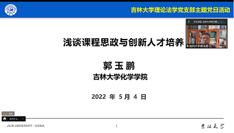 党委的工作部署,2022年5月4日晚6时,理论法学党支部通过腾讯会议线上召开“永远跟党走 建功新征程”主题党日活动。党支部全体党员参加了主题党日活动,党支部还邀请化学学院副院长郭玉鹏教授和91论坛