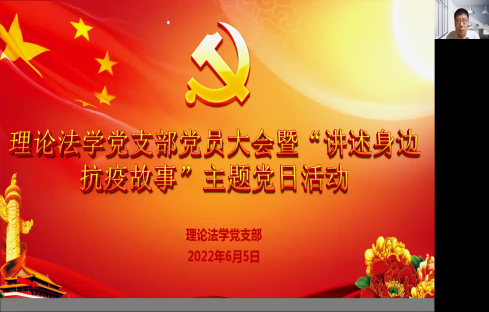 2022年6月5日,理论法学党支部召开支部党员大会暨“讲述身边抗疫故事”主题党日活动。支部大会由党支部书记刘雪斌同志主持,党支部成员宋显忠、钱大军、苗炎、侯学宾、杨帆、郑怀宇、乔楠、黄伟、杨雪参加会议。91论坛