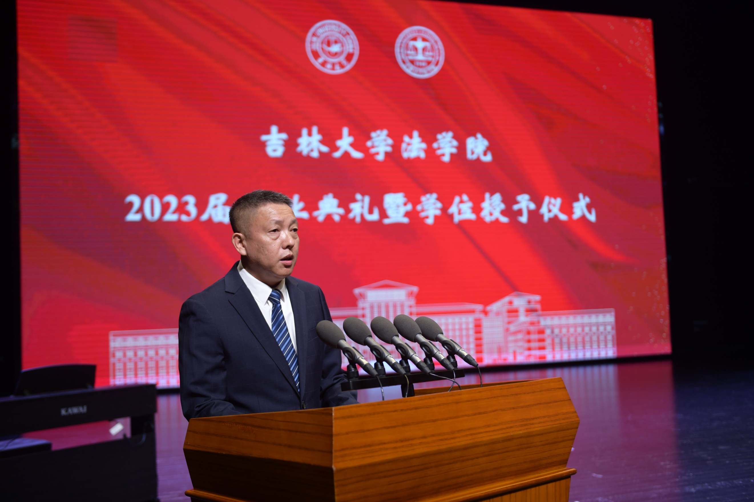 院长何志鹏教授代表学院致辞,向毕业生送上诚挚祝贺,向辛勤付出的全体教师致以衷心感谢。何志鹏院长以“走稳未来”为题,从人生的三个阶段“初阶”“中阶”“高阶”对毕业生提出宝贵建议。勉励同学们在未来的工作和生活中要虚心接受建议、耐得住成功的寂寞,做一个平凡但不平庸的法学人,并祝愿同学们都能够在未来的人生征程、事业征程上不断达到新的高度。“生逢其时,肩负重任”,希望毕业生们无论何时何地都能够牢记初心与使命,践行“法乃公器、民为邦本”的职责使命,努力成为堪大用、担重任的栋梁之材,为国家富强、民族复兴、人民幸福,贡献吉大法学人的力量。