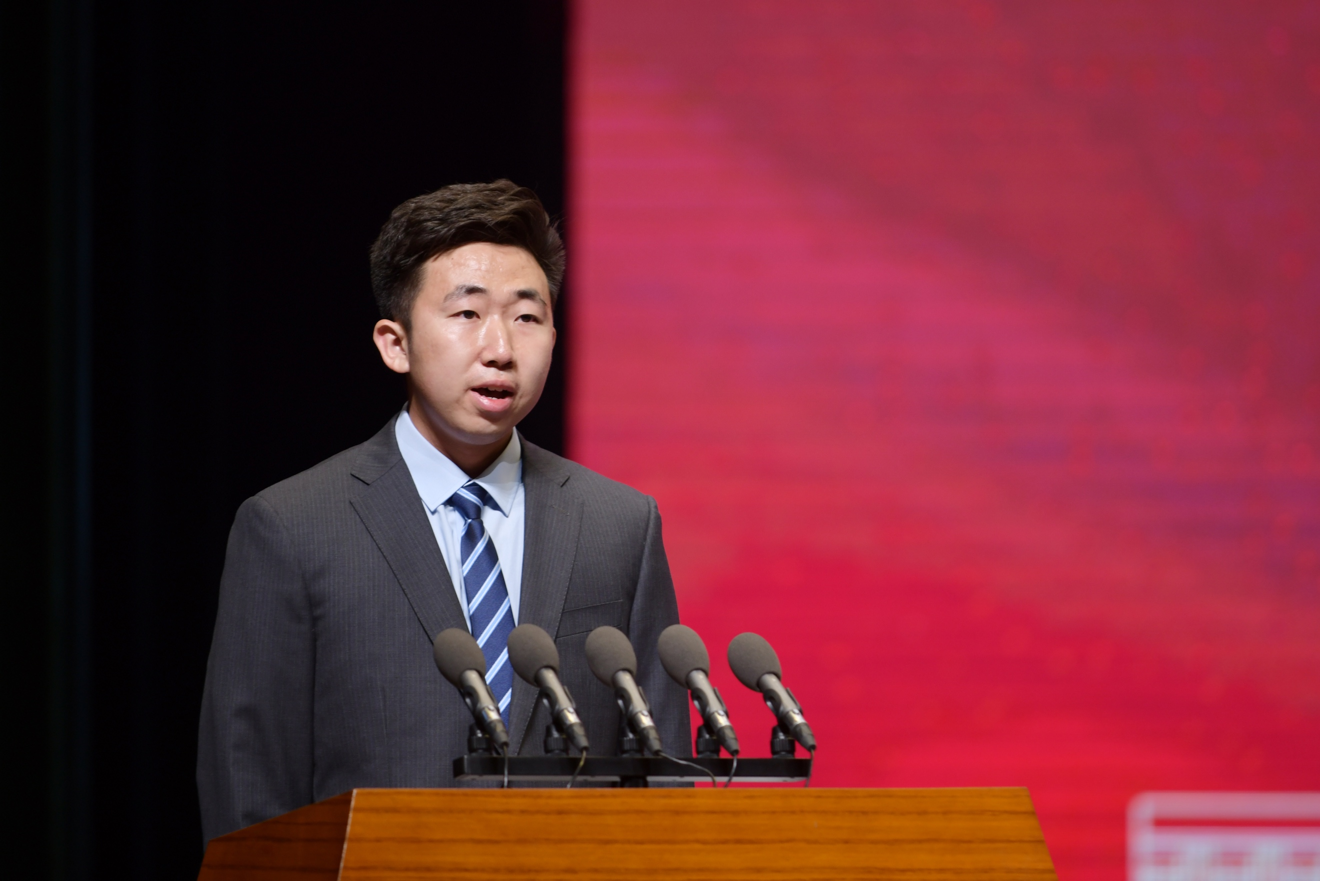 第二十二届法律硕士联合会主席团轮值主席朴景睿同学分别代表毕业生与在校生发言。他们回顾了在91论坛
