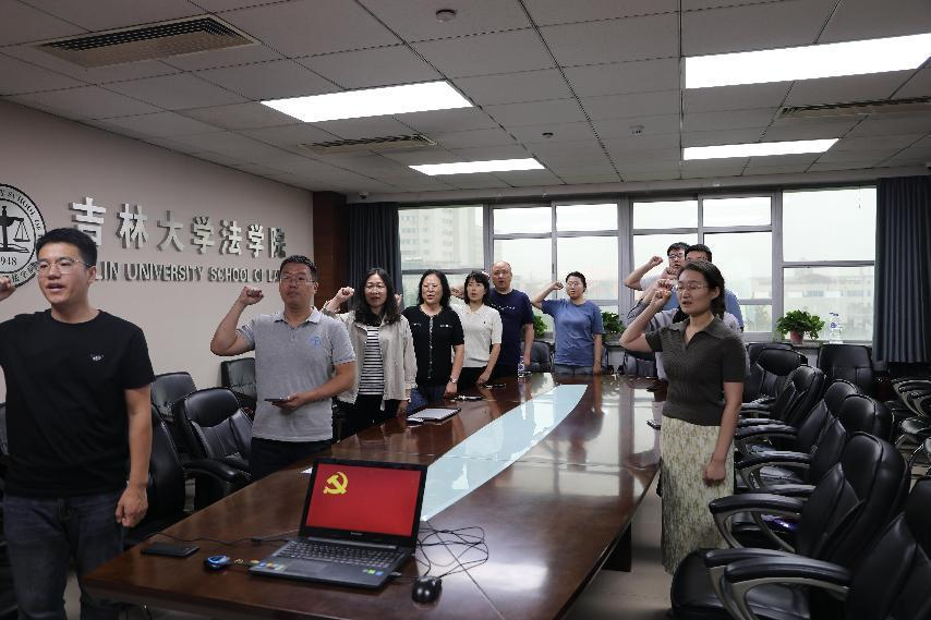 最后,为庆祝中国共产党成立103周年,缅怀革命先烈的丰功伟绩,牢记初心使命,赓续红色血脉,全体党员高擎右拳,面对鲜艳的党旗,由支部书记刘舰领誓,全体党员再次重温了入党誓词。