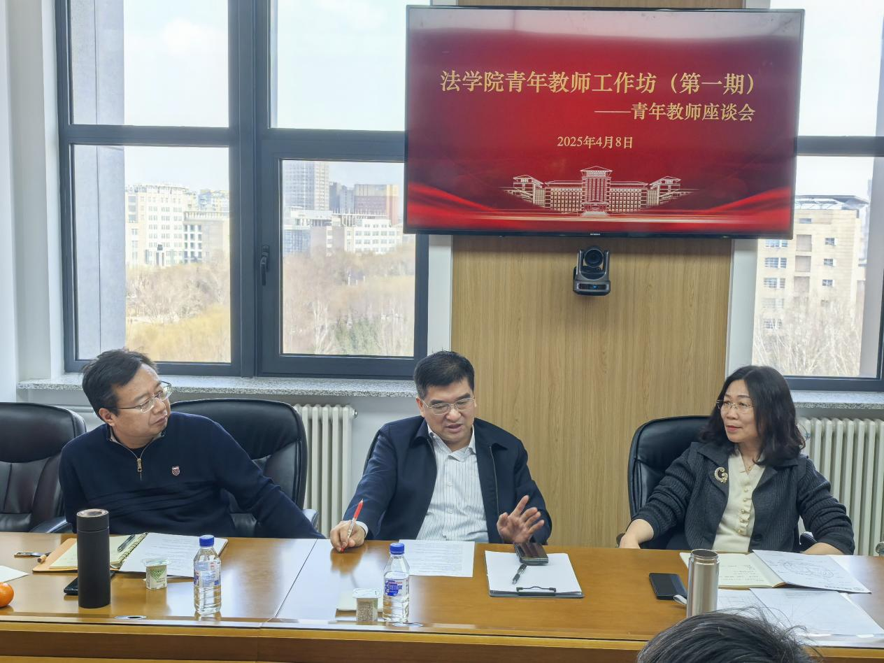 青年教师工作坊(第一期)——青年教师座谈会。贾志强、王俐智、陈洪磊等十余位青年教师代表以及何志鹏院长、张杰书记等学院领导参会,会议由吕欣副院长主持。