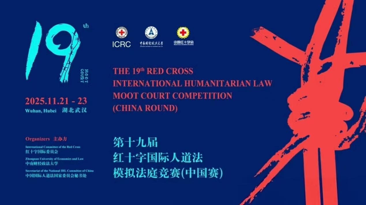 2025年11月21日至23日,第十九届红十字国际人道法模拟法庭竞赛于中南财经政法大学南湖校区成功举办,近70所国内高校代表队参与角逐。本届赛事由红十字国际委员会东亚地区代表处牵头主办,参赛选手需就武装冲突性质、受保护对象的法律地位、上级责任等核心议题展开深入分析与辩论。