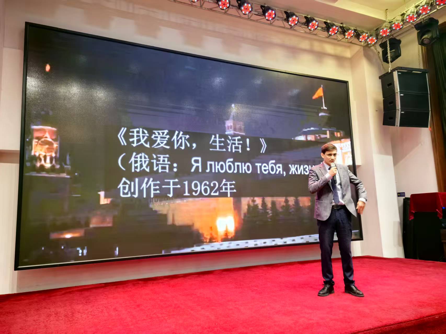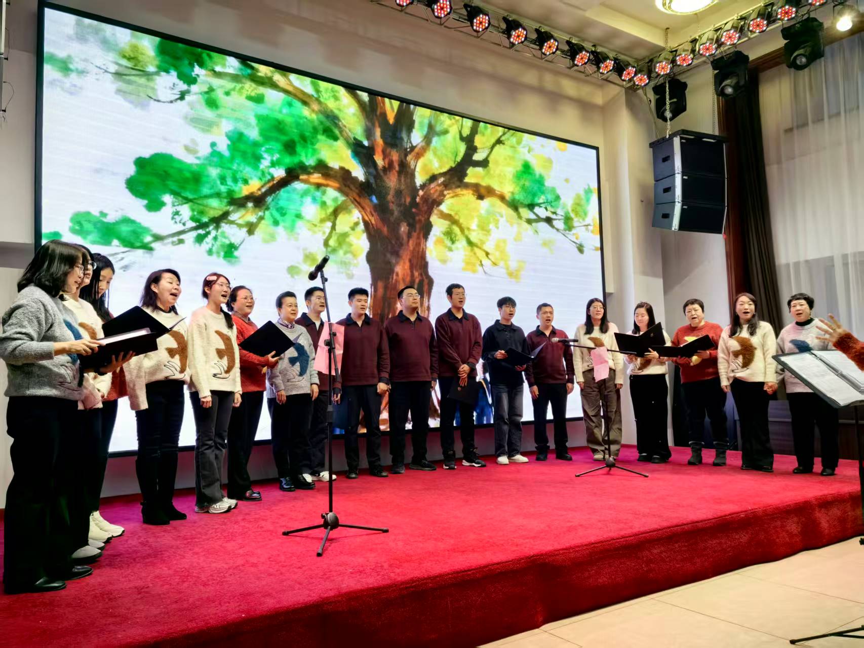 教师合唱团率先登场,以“用歌声传递温度,以艺术滋养心灵”为宗旨,先后带来《同桌的你》《想把我唱给你听》《我是象牙塔里的一棵树》三首合唱曲目,其中原创歌曲《我是象牙塔里的一棵树》由任喜荣教授创作,歌声中满含教育工作者的坚守与芬芳,赢得全场阵阵喝彩。独唱节目同样惊艳,贾志强老师和特邀小嘉宾的《勇敢的心》传递无畏热忱,瓦伦丁老师的跨国界演唱展现多元艺术魅力,房绍坤老师的《天边》则以熟悉旋律带来春日暖意。