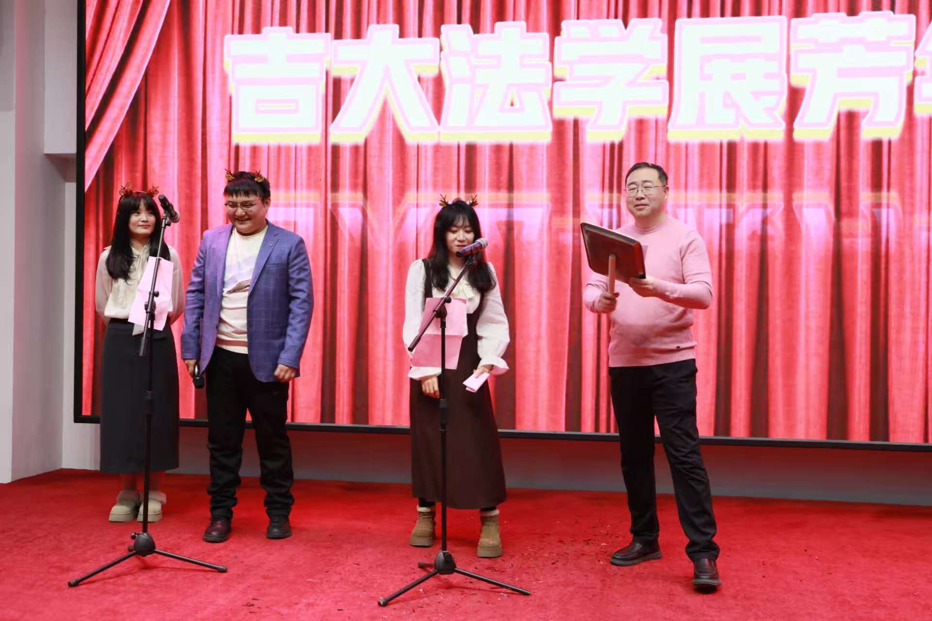 诗朗诵节目成为本次联谊会的一大亮点,各教研部老师们以诗为媒,诠释法治信仰与师者担当。理论法学研究中心的《法治之光——致敬理论法学研究中心》彰显法治精神的磅礴力量,商法教研部的《最美吉大商法人》展现法苑工作者的责任风采,经济法与环境法教研部的《法在心中》传递法治信仰的深厚底蕴,宪法与行政法教研部的《以法之名》诉说初心坚守,马新彦、房绍坤两位老师的《我们年轻》则重温青春朝气,字字铿锵、句句深情,引发全场共鸣。此外,民法教研部带来的三句半《不能停止奋斗》与行政团队的三句半《吉大法学展芳华》表演,以幽默创意的形式点燃现场气氛,让大家在欢声笑语中感受奋斗的力量。