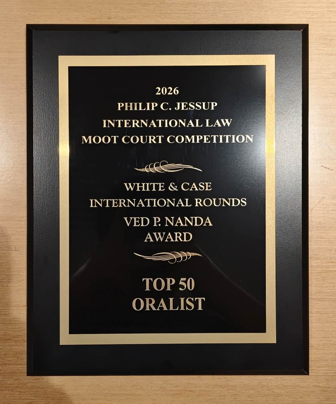 代表队在四场竞赛中三胜一负,最终排名第60名。2022级本科生李恩宇摘得韦德·普拉卡什·南达奖(Ved P. Nanda Award),跻身全球前50最佳辩手。