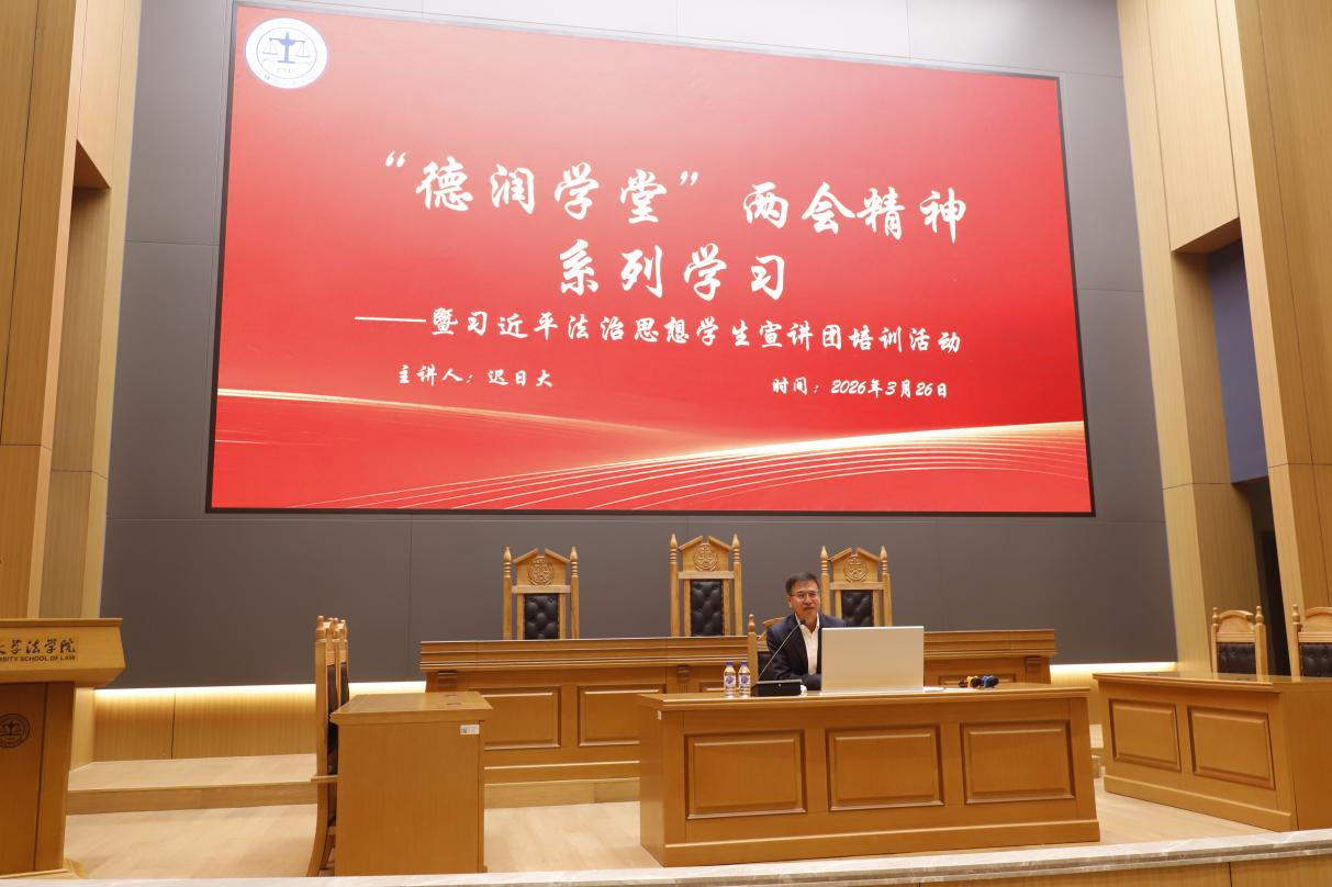 “德润学堂”于2026年3月23日至4月8日,成功举办两会精神系列学习暨习近平法治思想学生宣讲团培训活动。本次活动吸引全院400余名学子积极参与,旨在通过“总分结合、学思践悟”的模式,引导法科学子将个人成长融入国家发展大局。