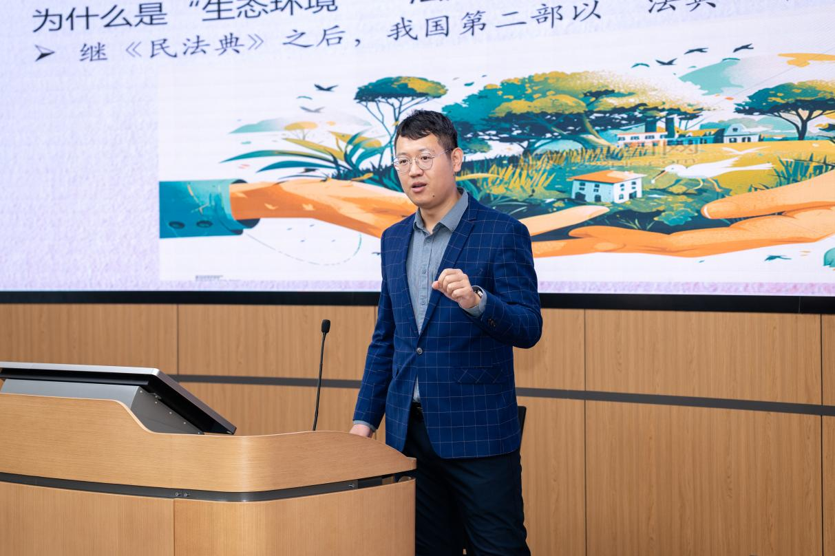 研学环境法典,解读绿色理念。宋天骐老师深刻剖析了《中华人民共和国生态环境法典》编纂的必要性与进程,阐述了其背后的思想伟力与法治智慧,并鼓励同学们深入学习习近平法治思想,成为生态文明法治故事的积极传播者。