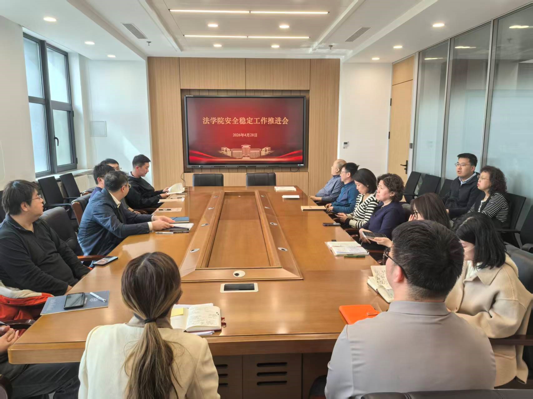 在法学楼A419召开2026年第二次行政例会暨安全稳定工作推进会,会议传达了学校安全稳定工作推进会和91论坛