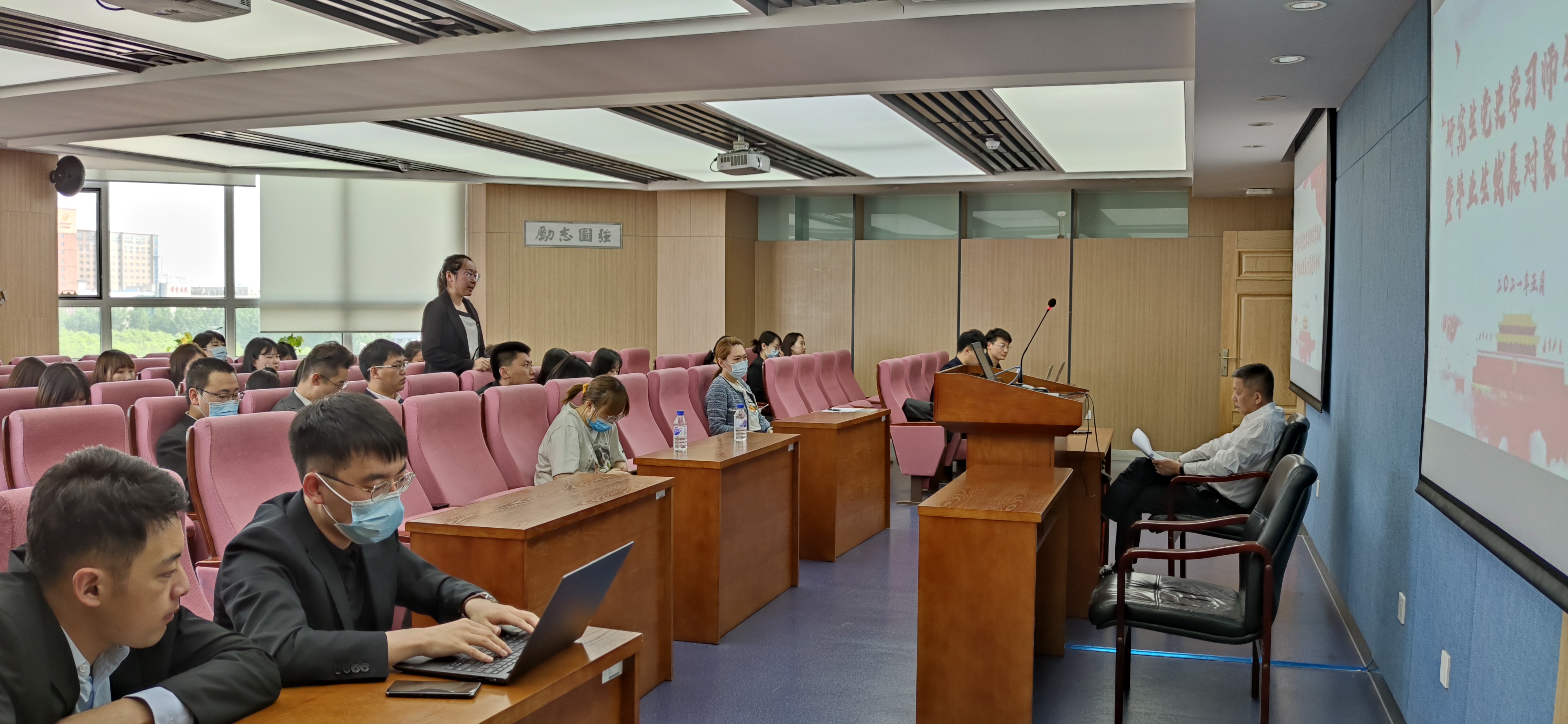 张俊峰书记的分享引发了同学们的讨论。2018级法律硕士任克达结合自身做法律援助律师的经历谈了自身的体会。他表示,深入基层做援助律师,让他深刻地体会到了基层工作的不易,体会到了党全心全意为人民服务的宗旨不是一句空话。作为新时代的共产党员,只有将自身的发展和祖国人民的需要结合在一起,深入基层为人民服务,才能更好地实现自身价值。