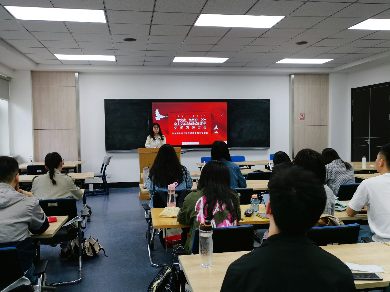 2020级法学硕士第三党支部在经信教学楼D207教室召开了社会主义革命和建设时期党史学习集中研讨活动。本次活动由2020级法学硕士第三党支部书记王钦主持,2020级法学硕士第三党支部全体党员、2020级法学硕士三班11名入党积极分子共同参加活动。