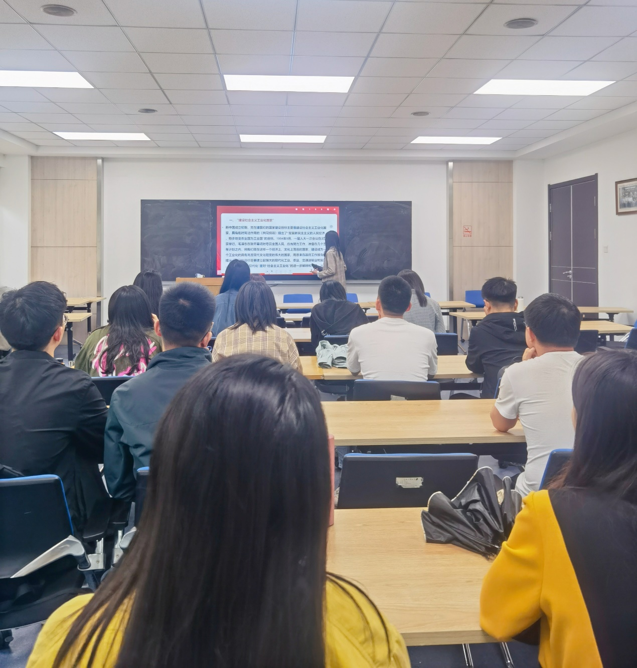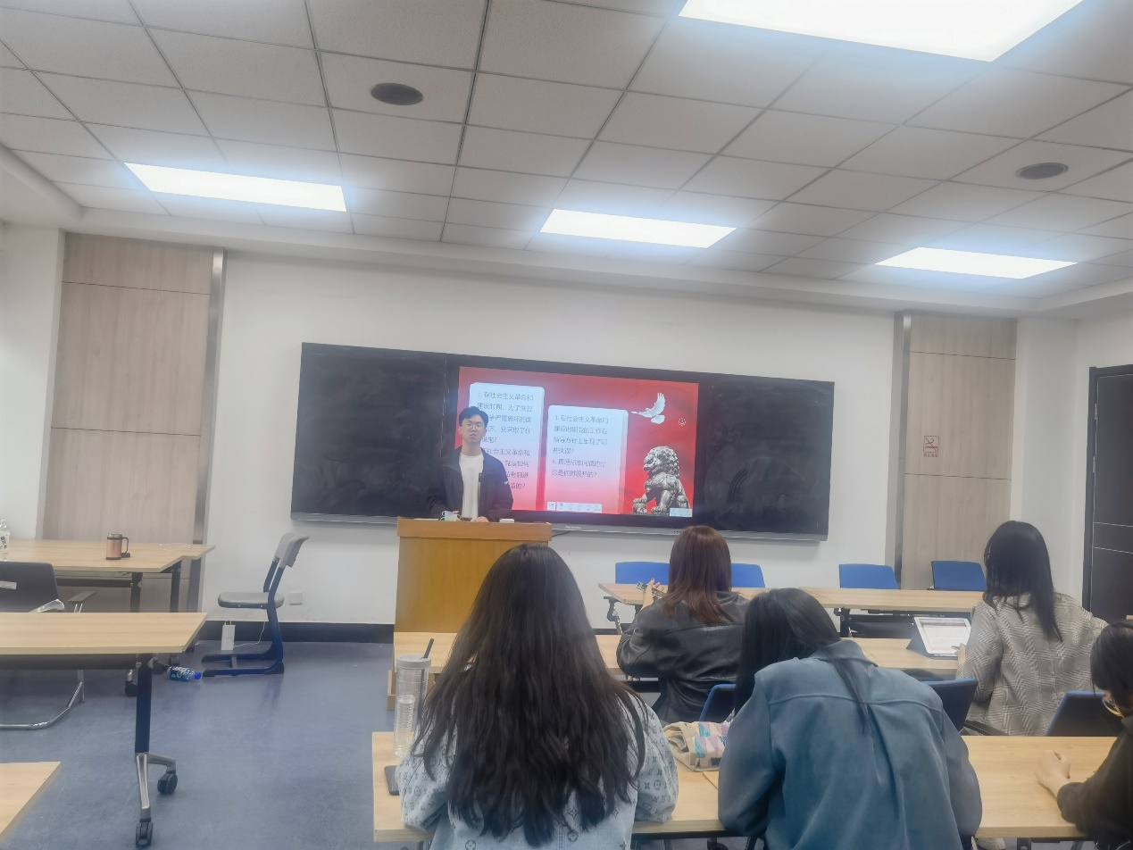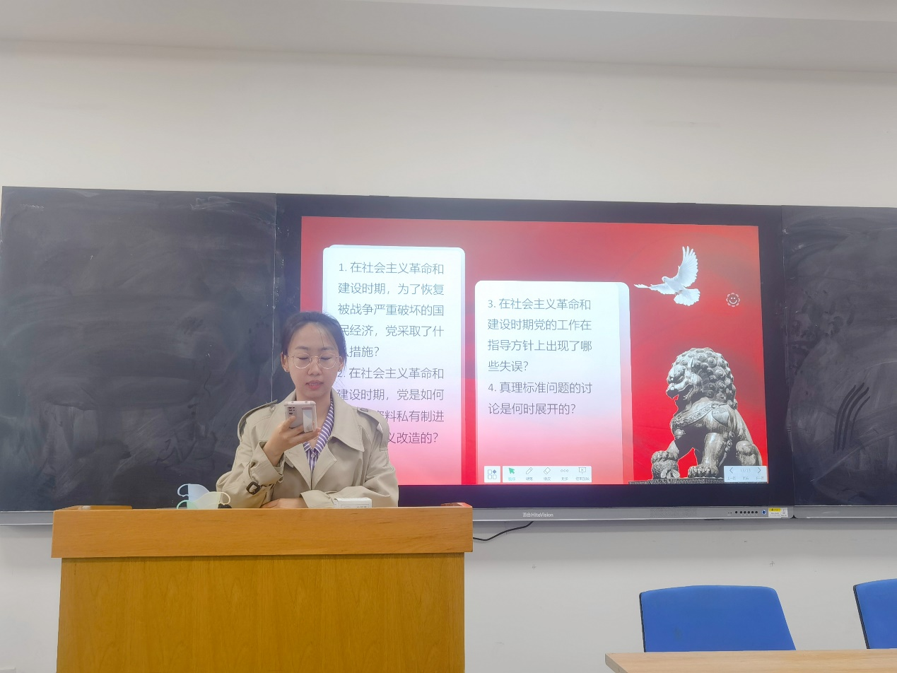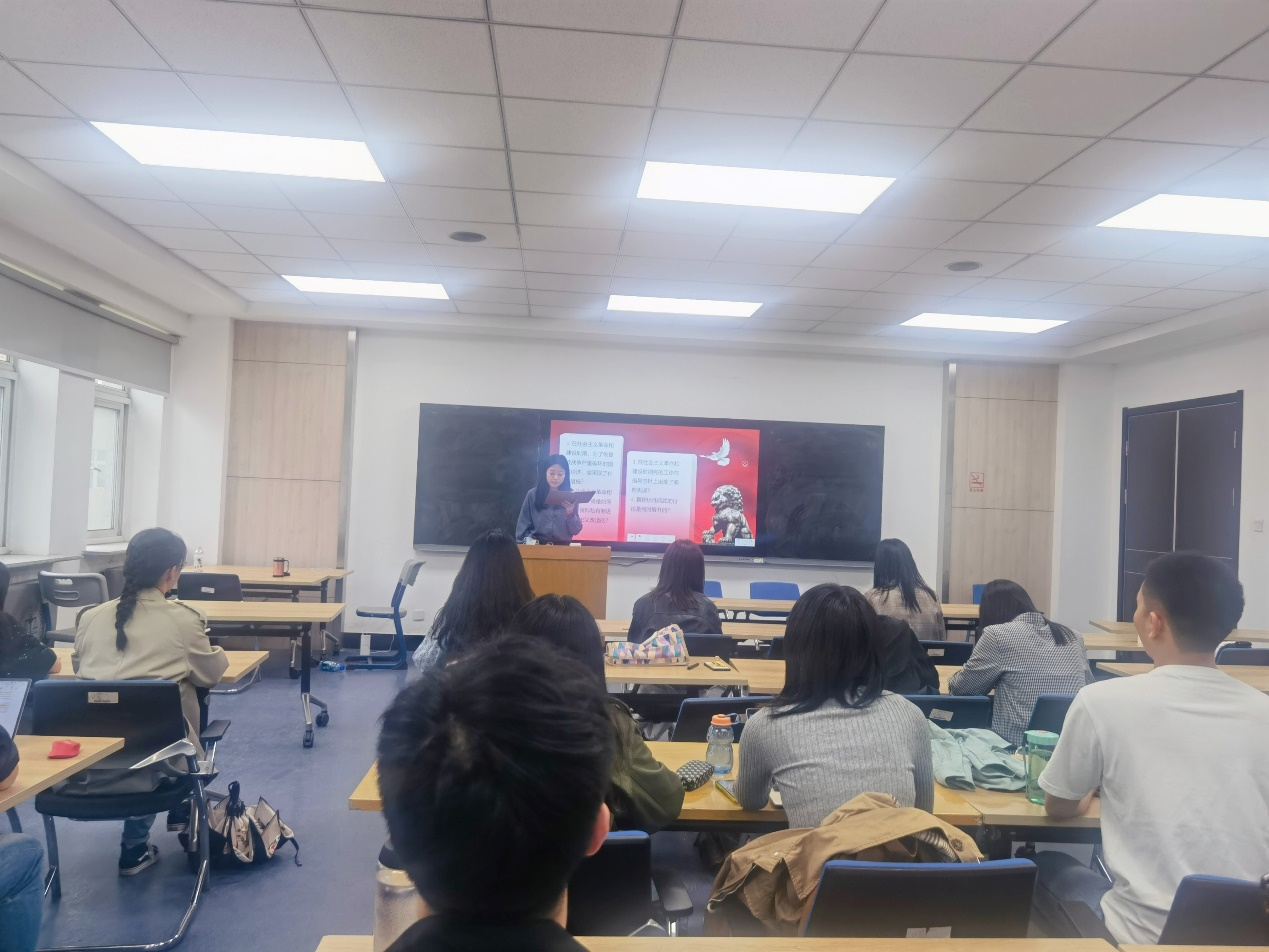 首先,2020级法学硕士第三党支部宣传委员陈晓妹同志作为领读人介绍了党在社会主义革命和建设时期的国家建设目标。在这一时期,国家建设目标经历了从“社会主义工业化国家”到“社会主义强国”再到“实现四个现代化,建设社会主义现代化强国”的转变。她指出,以史为鉴,可知兴替,回顾党在新中国成立后对中国建设社会主义道路的艰辛探索,总结新中国社会主义现代化建设的经验教训,对建成富强、民主、文明、和谐、美丽的社会主义现代化强国具有重要意义。