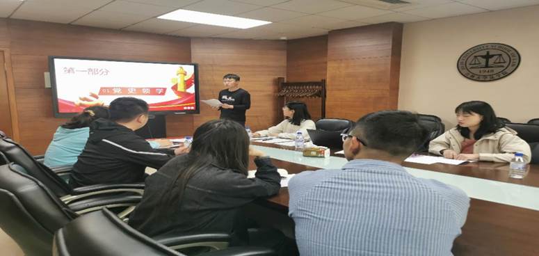 习近平总书记指出:“改革开放是我们党的历史上一次伟大觉醒,正是这个伟大觉醒孕育了新时期从理论到实践的伟大创造”。为使同学们认真学习改革开放时期的党史,贯彻落实党中央精神,2020级法学硕士第四党支部于2021年5月26日在东荣716会议室举行以“学习百年党史,汲取奋进力量””为主题的党史学习教育。本次活动对党在改革开放阶段的历史进行了系统学习,由2020级法学硕士第四党支部丁俊杰同学领学,党支部全体成员以及部分同学共同参加。