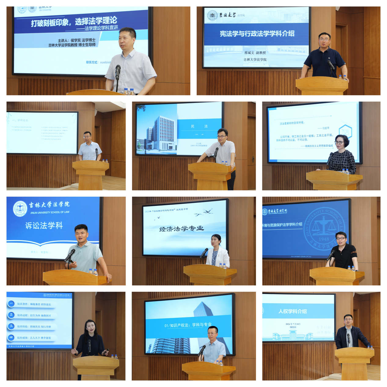 随后,各学科教师代表结合专业特色对各专业进行介绍。法学理论教研部侯学宾教授、宪法与行政法教研部邢斌文副教授、刑事法学教研部王充教授、民法教研部王立栋副教授、商法教研部于莹教授、诉讼法教研部谢登科教授、经济法教研部董文军教授、环境法教研部侯明明副教授、国际法教研部姚莹教授、民法教研部王国柱教授、国际法教研部魏晓旭老师依次就各学科的发展历程、学科特色、师资团队和就业前景等进行了分享介绍。