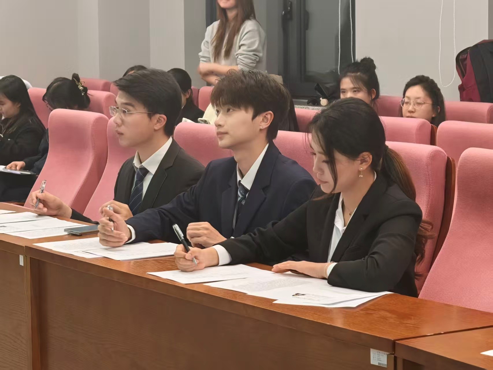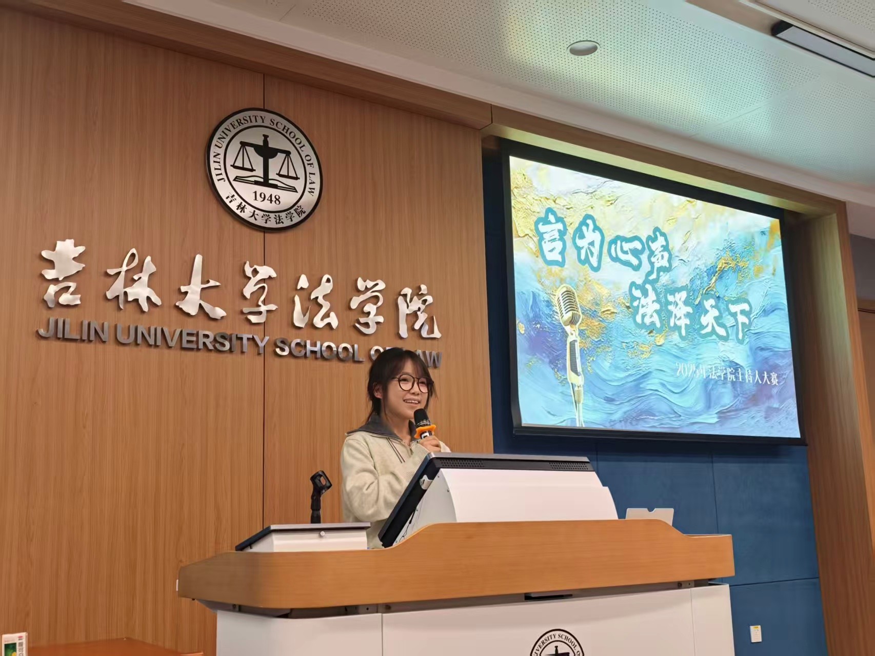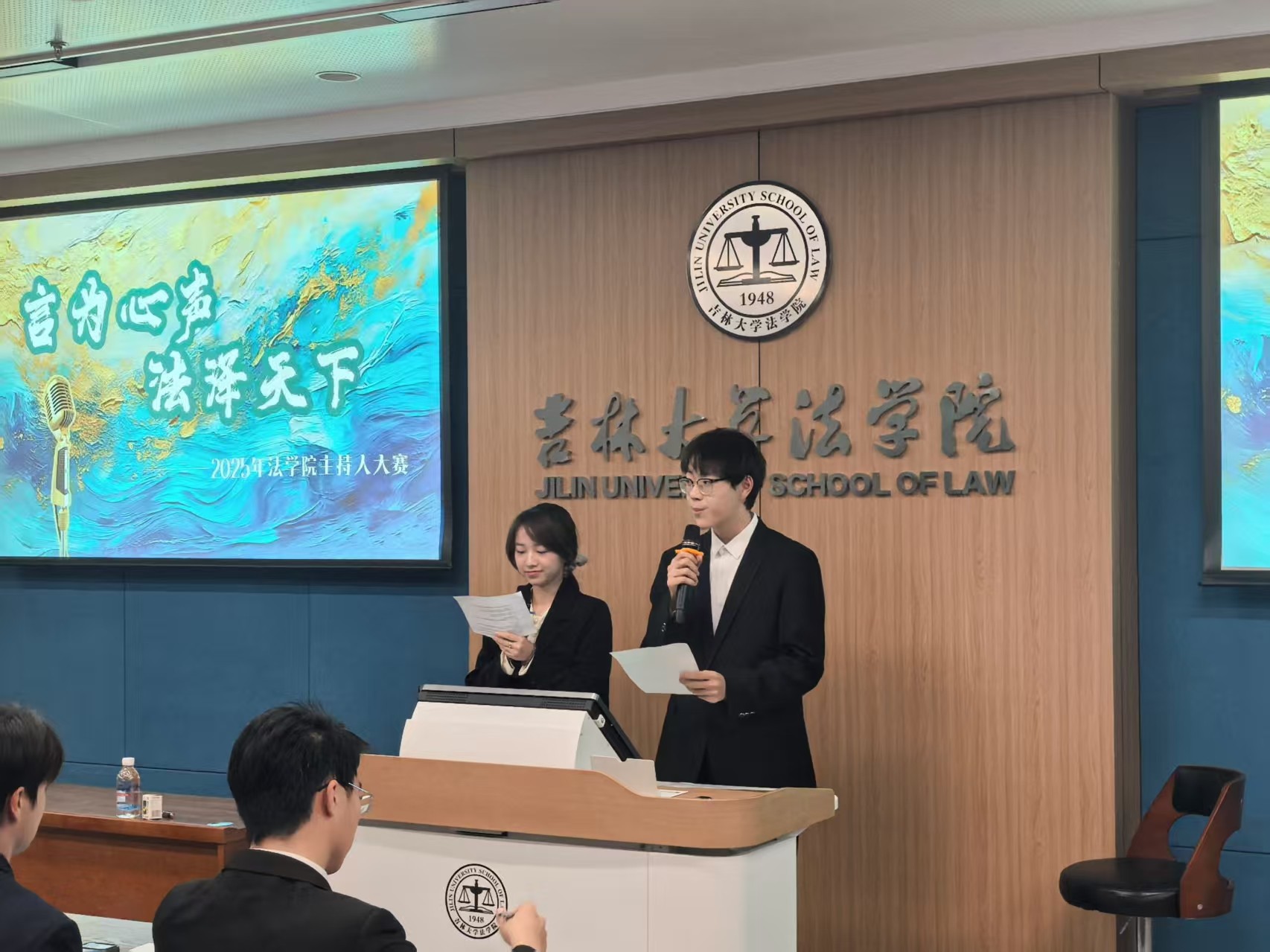主持人大赛于2025年11月1日如期启幕。本次比赛以“言为心声,法泽天下” 为主题,致力于展现学子们的语言魅力与法治素养,丰富校园文化生活、推进美育实践。经过前宣传招募,共有16名同学踊跃报名,踏上逐梦舞台。参与本次比赛的评委分别由2023年和2024年91论坛
