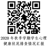 2.排查后,请各学院兼职心理辅导员及负责研究生工作的学工干部,根据排查情况认真填写《2020年秋季学期学生心理健康状况排查情况汇报》(见二维码),如排查无情况,也需提交汇报。该通道将于9月18日关闭,请各单位务必及时完成排查工作。