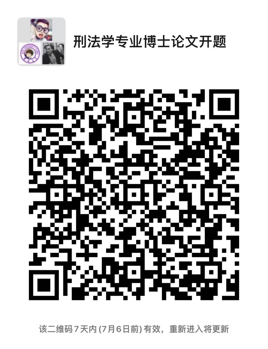 本次刑法学专业博士论文开题拟定于2022年7月初举行,请拟开题的学生经导师同意和指导后于7月1日前加入此微信群报名,请相关同学相互转告。