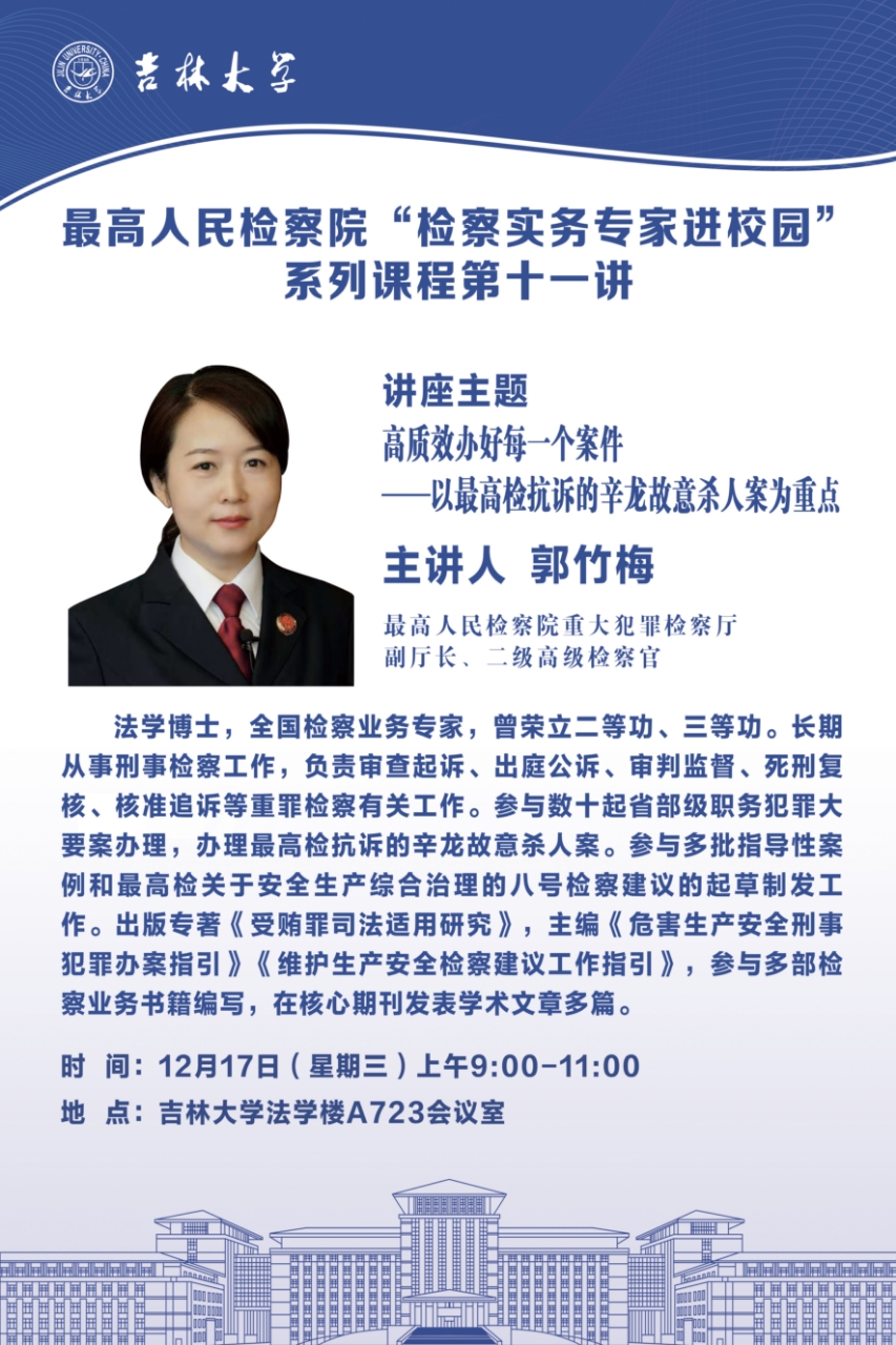 下一篇:最高人民检察院“检察实务专家进校园”第十期开讲——以“三个善于”为指引:高质效办理减刑假释监督案件