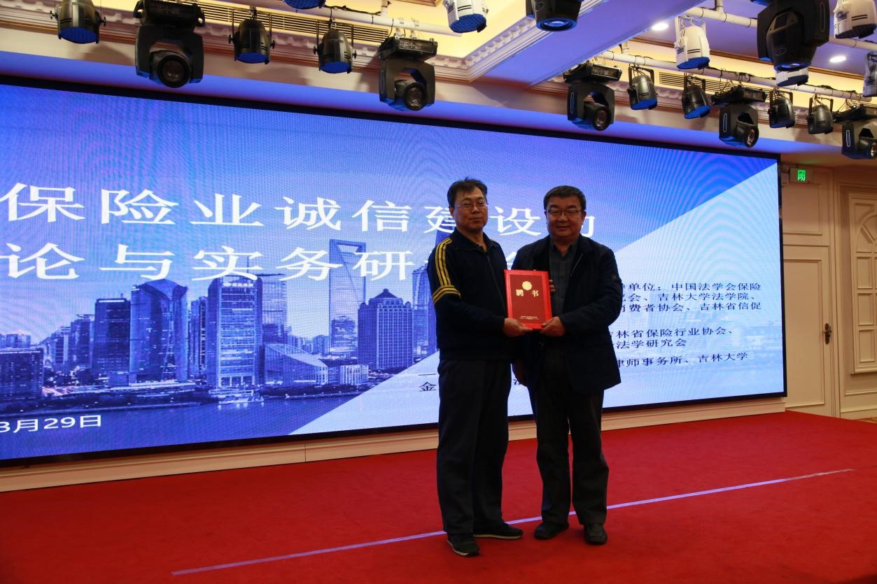 副教授潘红艳,泰康人寿李总等进行发言。会议的尾声研究会达成共识,表决决定聘请中国保险法学研究会副会长、中国人民大学贾林青教授为长春市法学会保险法学研究会顾问,并希望从研究会的角度出发,从宏观到微观,从制度建设到自身建设,依靠法律维护社会公益,体现团结互助精神,促进保险业蓬勃发展。