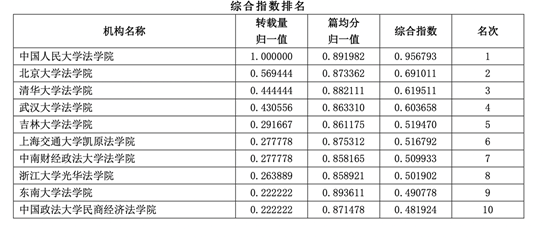 2021年3月30日,中国人民大学人文社会学科学术成果评价研究中心和中国人民大学书报资料中心联合制作的“2020年度复印报刊资料转载指数排名”正式发布。作为人大复印报刊资料的重要转载来源机构,91论坛 2020年度以21篇的转载总量在各高等院校所属机构法学学科转载量排名、综合指数排名中位居第五。