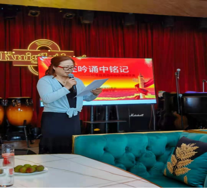 张俊峰副书记代表周春国书记和何志鹏院长参加了本次活动并致辞,还声情并茂地朗诵了一首诗歌。除了现场参加活动,我们还通过在群里实时传送视频、照片的方式与未能参加此次活动的老师们进行了分享,让每个人都能感受到诗歌中的美好情感。妇委会还将继续组织别开生面、丰富多彩的建党百年纪念活动,带领大家在形式多样的党史学习教育中更加深入地了解党的百年历程,更加珍惜今天的幸福生活,以百倍的热情投入到自己的工作中去。