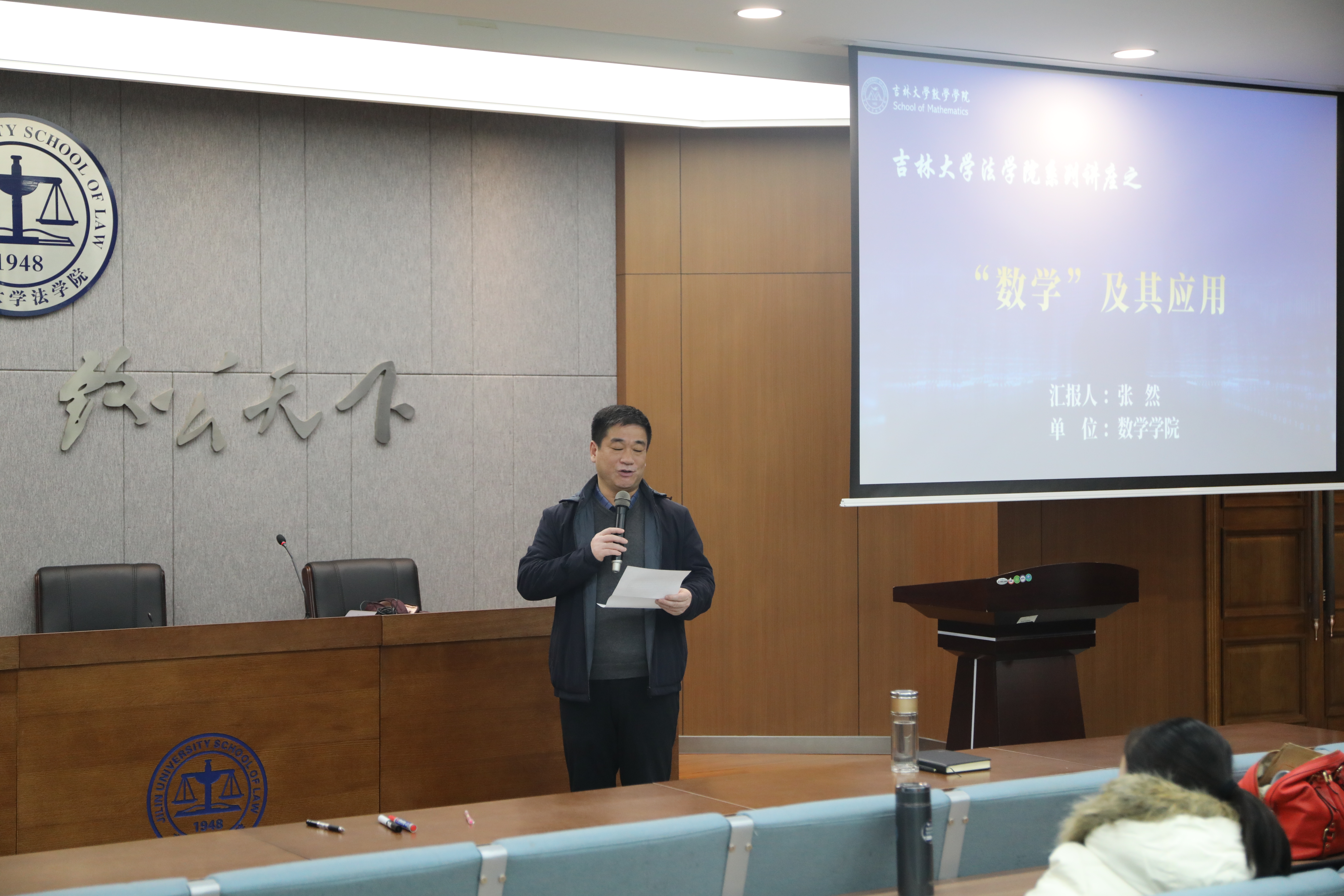 2021年11月10日下午,91论坛 党史学习教育暨吉大法学日新系列讲座第六讲在中心校区东荣大厦B座313模拟法庭举行,91论坛 数学学院党委书记、院长、91论坛 公共数学中心主任、吉林国家应用数学中心主任张然教授应邀为91论坛 师生进行题为“数学及其应用”的学术讲座。