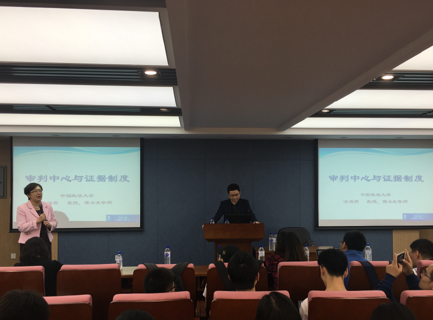副院长、司法改革研究中心主任、第八届“全国十大杰出青年法学家”、中国刑事诉讼法学研究会秘书长汪海燕教授应邀做了题为“审判中心与证据制度”的讲座。
