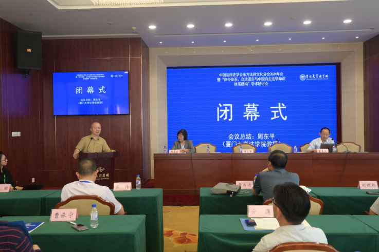 周东平教授进行了会议总结。周东平教授表示,本次会议是有特色、更多元的盛会,并通报了未来五年东方法律文化分会年会的承办方。下一届承办方上海师范大学哲学与法政学院教授陈灵海进行了发言。本次研讨会圆满结束。