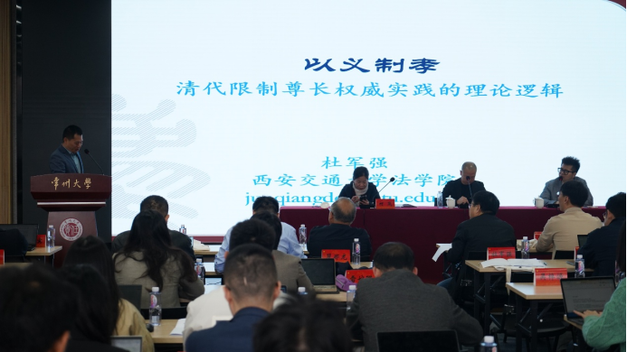 杜军强副教授的发言题目为《“以义制孝”:清代限制尊长权威实践的理论逻辑》。他认为,清代限制尊长权威的实践源自传统“天合”与“义合”概念的交替运用,这也是清代国家推行“明刑弼教”政策的要求。