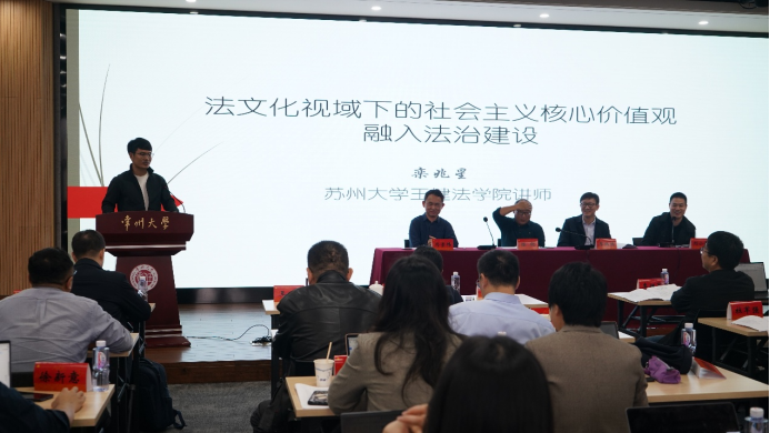 栾兆星老师的发言题目为《法文化视域下的社会主义核心价值观融入法治建设》。他认为社会主义核心价值观融入法治建设是当下中国重构“礼法”的尝试。而且社会主义核心价值观主导或支配下的法治建设,蕴含了一种兼具中国特色和普世之维的法治文明新形态,即“德性法治”。