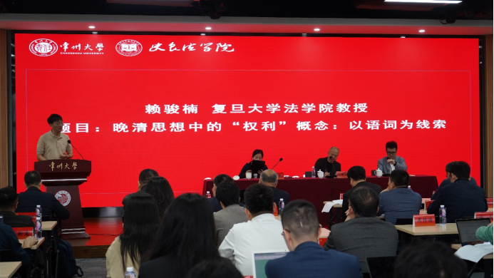 赖骏楠教授做了题为《晚清思想中的“权利”概念:以语词为线索》的报告。赖教授从“权利”一词翻译方式的历史源流出发,从知识社会学的角度、结合时代背景探讨了词义的演变,指出了对权利的翻译中可能的内涵变化,以及这背后所体现的本土语境。