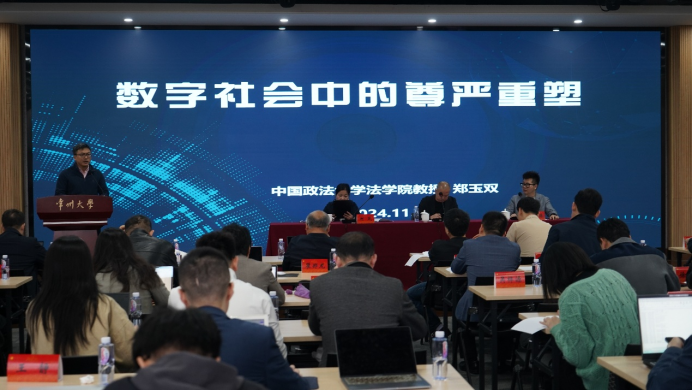郑玉双教授发表了题为《数字法治视野下的尊严》的演讲。郑教授提出,人工智能对法律价值产生深远影响,人的尊严在其中尤为关键。他主张构建建构性尊严观,促进社会达成价值共识。