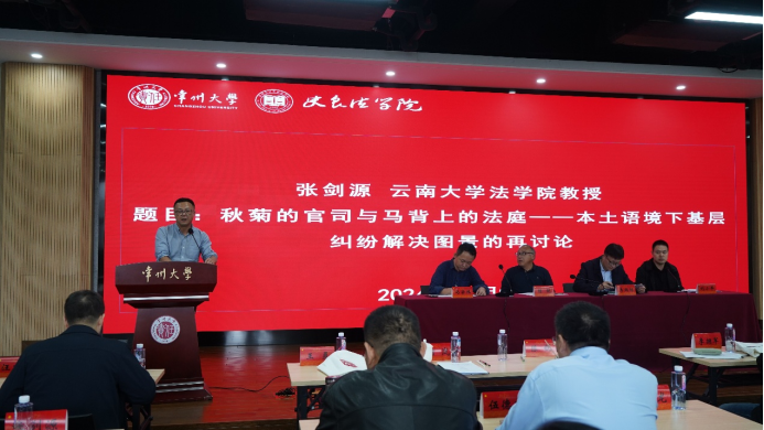 张剑源教授发言题目为《秋菊的官司与马背上的法庭————本土语境下基层纠纷解决图景的再讨论》。他从《秋菊打官司》与《马背上的法庭》这两部本土法律电影引入,深入秋菊与老冯的具体困境中,挖掘法律在实践层面存在的程序铺设、程序空转等潜在问题,提出要面向更广阔的纠纷解决场域。