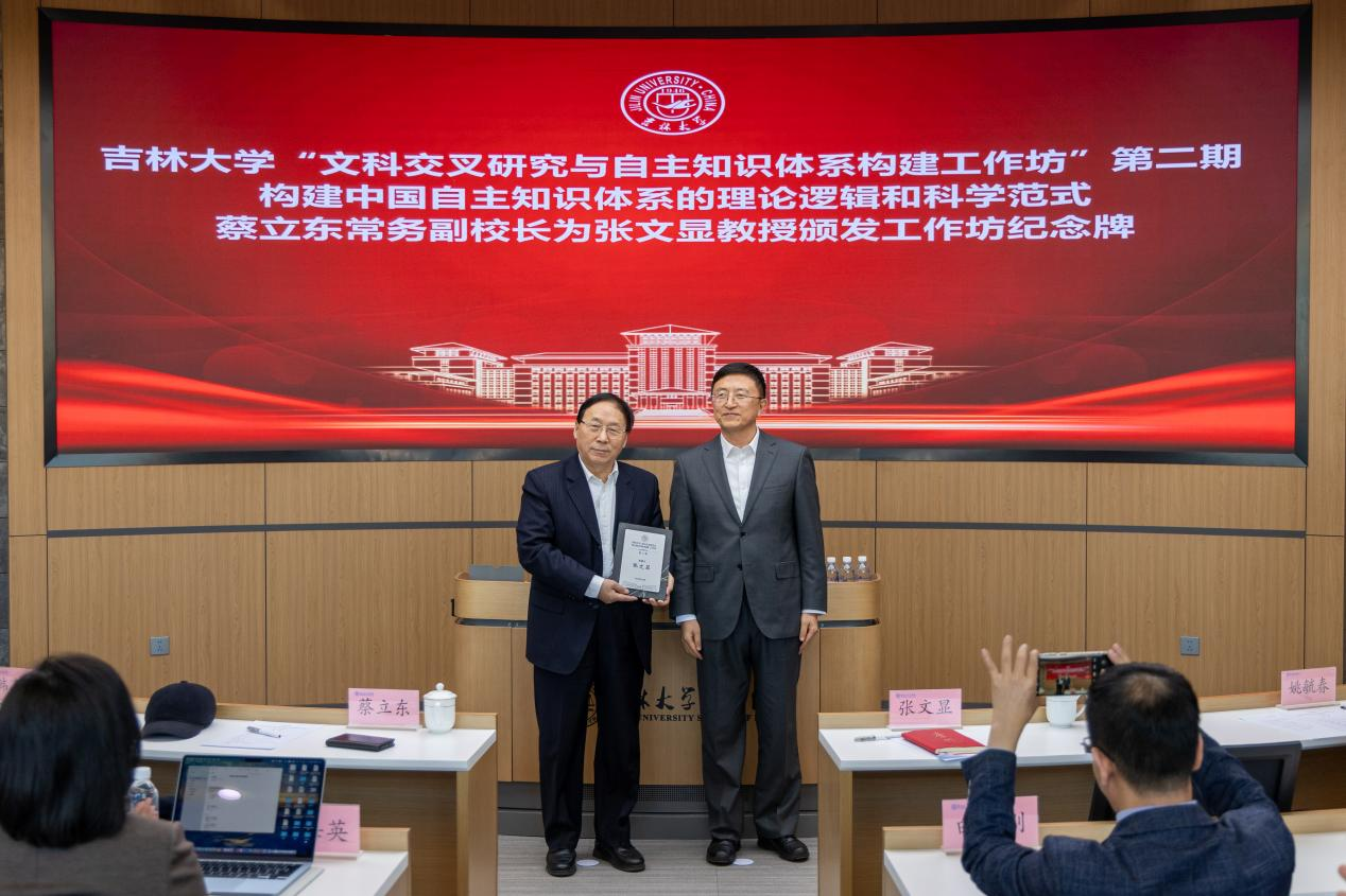 活动伊始,蔡立东向工作坊第二期主讲人张文显颁发工作坊纪念牌。